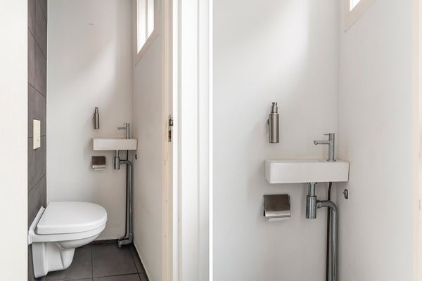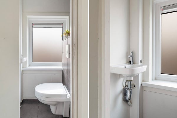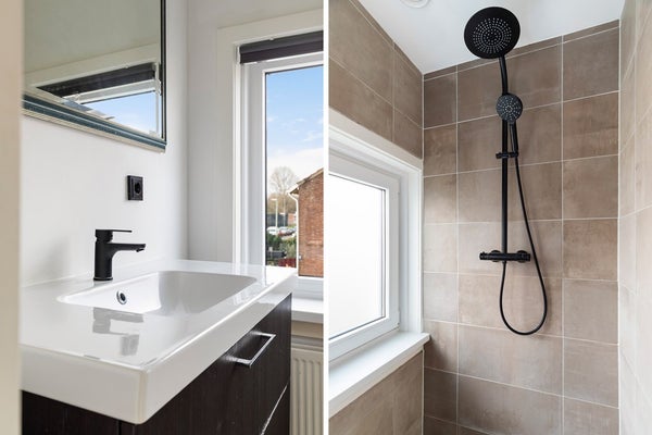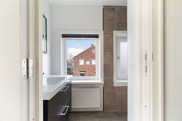 Gelegen aan de achterzijde, voorzien van kunststof draaikiepramen en afgewerkt met inbouwspots.
