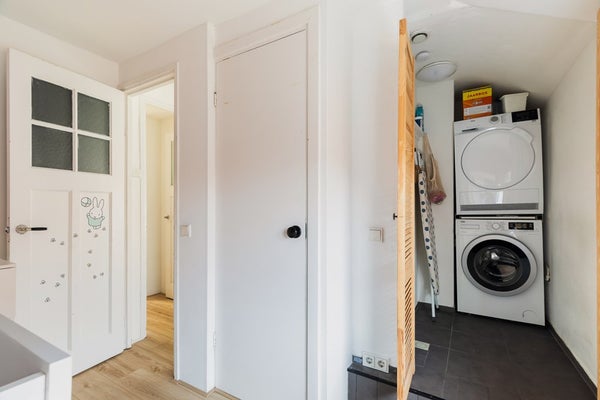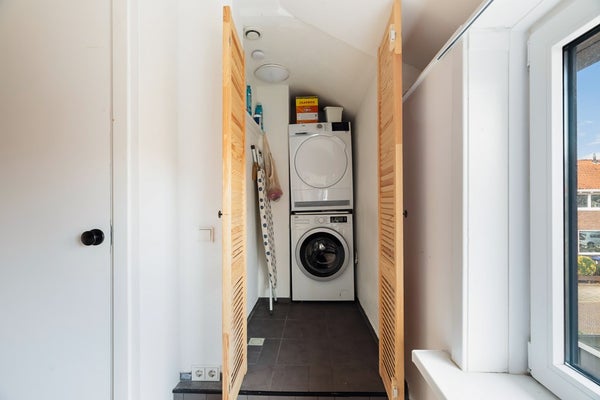 Gelegen aan de achterzijde met toegang tot een aparte wasruimte voor wasmachine en droger.