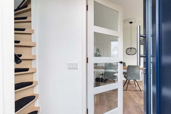 Entree/hal met toegang tot de woonkamer en trapopgang naar de eerste verdieping. Hier bevindt zich ook de meterkast met zeven groepen en glasvezelinternet.
