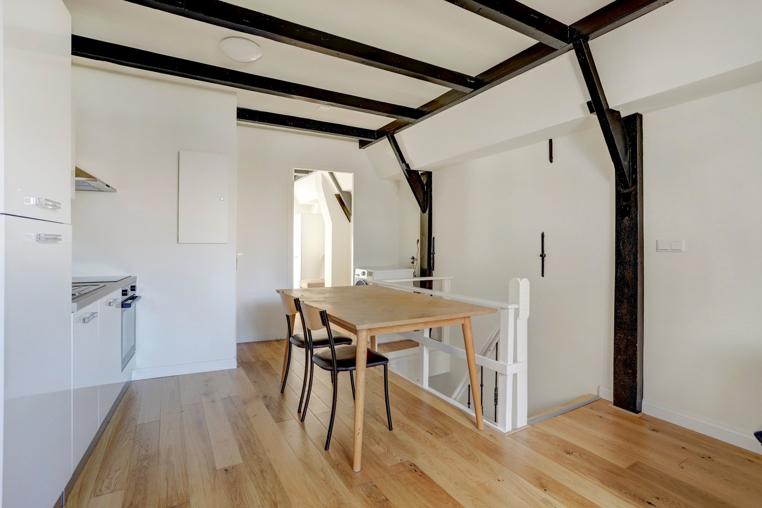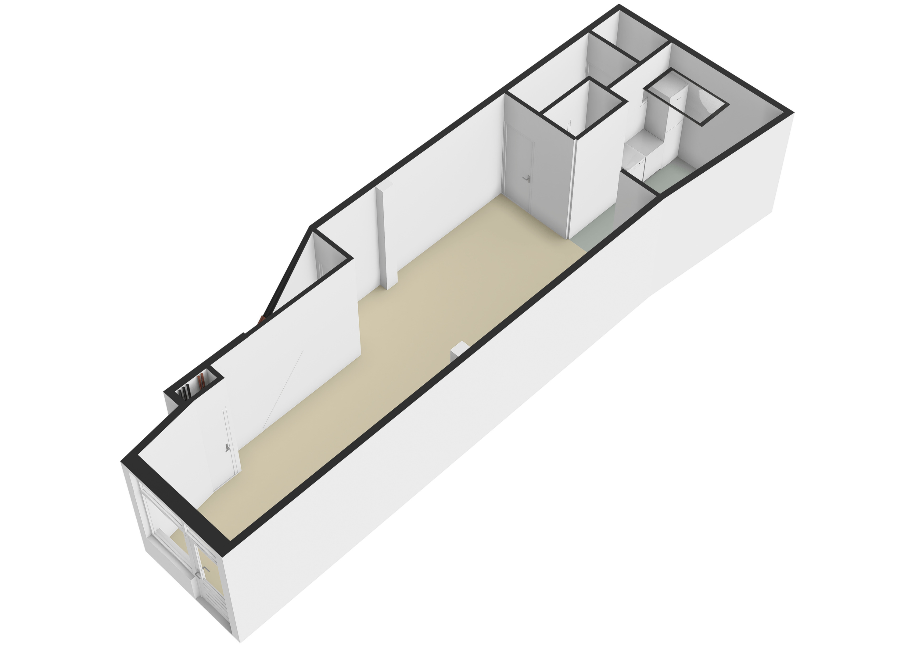 De horecaruimte heeft een aparte keuken met daglicht, voorbereid op aansluitingen voor efficiënt gebruik, en twee gastentoiletten. Met hoge plafonds en een praktische indeling heeft het pand potentieel voor een uitnodigende eetruimte en een terras.