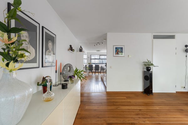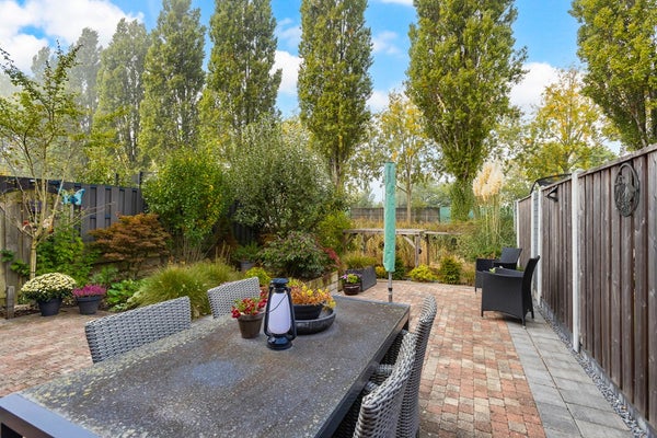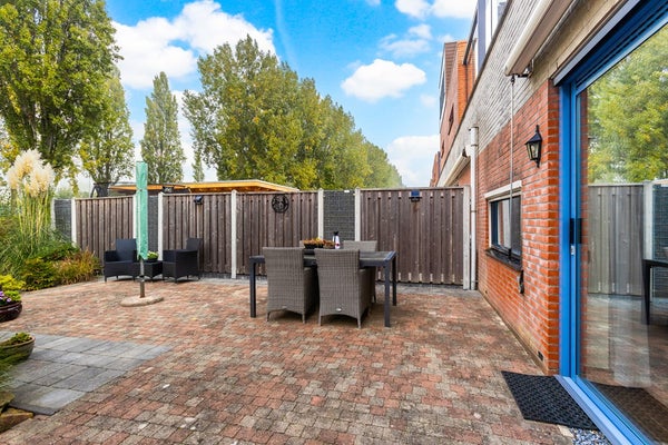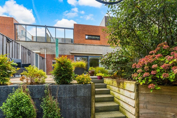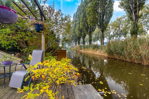 Buiten is het minstens zo prettig: een dakterras én een ruime, op het zuidwesten gelegen tuin met pergola, borders en uitzicht op het water. Hier geniet je op elk moment van de dag van je favoriete plek.