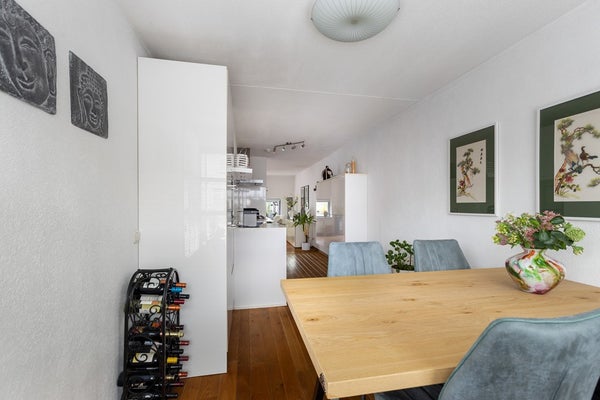 Bij het raam aan de voorzijde is ruimte voor een eettafel, waar je geniet van veel daglicht.