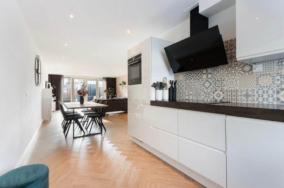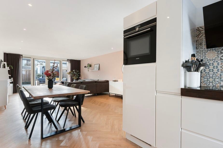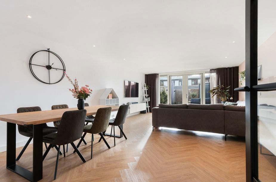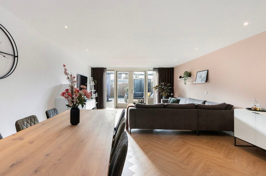 Deze royale eengezinswoning voldoet aan veel woonwensen. U kunt gemakkelijk twee auto's voor de deur parkeren en de zonnige achtertuin biedt voldoende ruimte om buiten te ontspannen. De tuingerichte woonkamer heeft openslaande deuren en een luxe open keuken, gecombineerd met een royale uitbouw die een leefruimte van ca. 8 meter diep creëert. Met vier slaapkamers op de eerste en tweede verdieping, en een dakterras, is er veel ruimte voor het hele gezin.