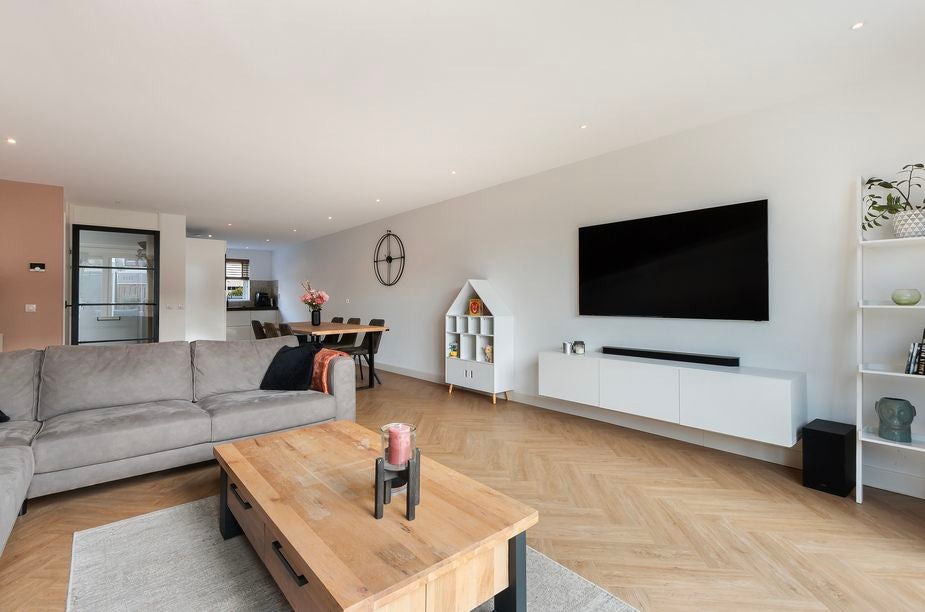 - De tussenwoning heeft een woonoppervlakte van 125 m² en beschikt over 6 kamers, waarvan 4 slaapkamers;