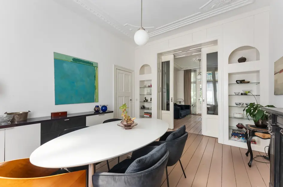 Ontdek dit royale herenhuis met karakter op een toplocatie nabij het centrum van Dordrecht. Het huis, gebouwd omstreeks 1908, beschikt over een woonoppervlak van ca. 173 m², verdeeld over drie verdiepingen en biedt zeven kamers voor comfortabel wonen. Bij binnenkomst kom je in een statige entree met authentieke details zoals hoge plafonds en glas-in-loodramen. De royale woonkamer van ca. 39 m² heeft openslaande deuren naar een overdekte veranda en stadstuin. De eenvoudige keuken biedt toegang tot de achtertuin. Op de eerste verdieping vind je vier slaapkamers en een badkamer, terwijl de tweede verdieping twee ruime slaapkamers heeft. Buiten ontspannen in de stadstuin op het noordwesten. Met een vernieuwde fundering en uitstekende bereikbaarheid per auto en OV, biedt dit gemeentelijk monument de perfecte gelegenheid om jouw droomwoning vorm te geven.