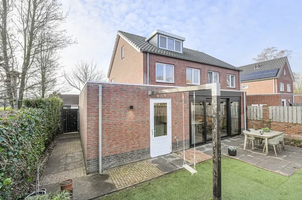 De in 2018 gebouwde twee-onder-één kapwoning met garage is gelegen in het rustige Dorst, dichtbij Breda en Tilburg. De woning heeft een woonoppervlakte van ca. 169 m² en beschikt over vier slaapkamers. De riante woonkamer, uitgebreid met een nieuwe keuken in 2022, vormt een perfecte leefruimte met vloerverwarming en een lichtstraat voor veel daglicht. De keuken is van alle gemakken voorzien, inclusief hoogwaardige inbouwapparatuur. Op de eerste verdieping vinden we drie slaapkamers en een fraai betegelde badkamer. De zolderverdieping bevat een extra slaapkamer en praktische bergruimte. De tuin, met een houten zithoek, biedt voldoende zoninval en de garage omvat ruimte voor één auto. Met energielabel A en negen zonnepanelen is deze woning ook duurzaam. Er zijn openbare parkeerfaciliteiten en ruimte voor twee auto's op eigen terrein.
