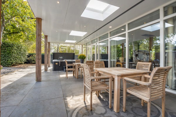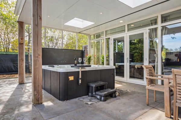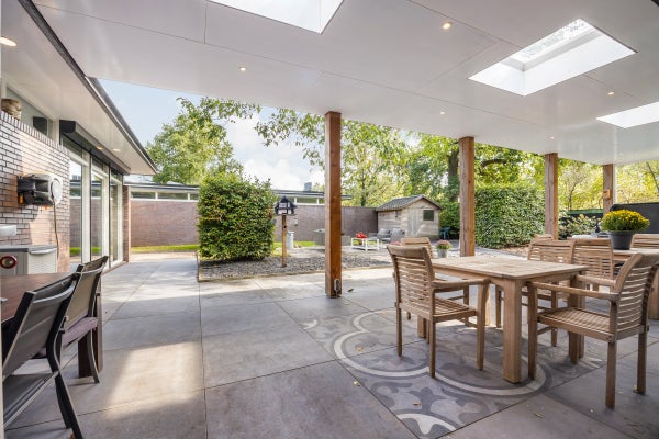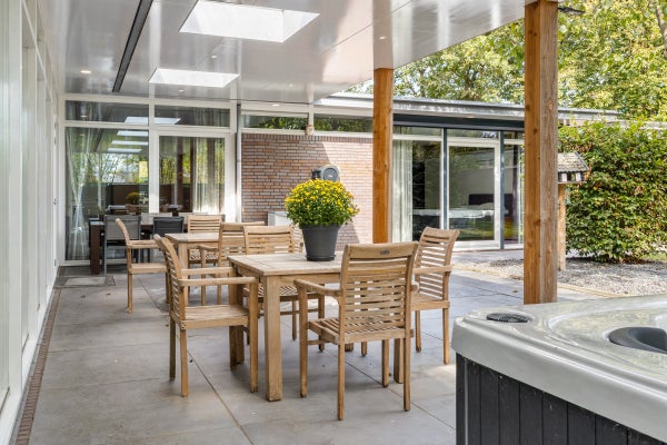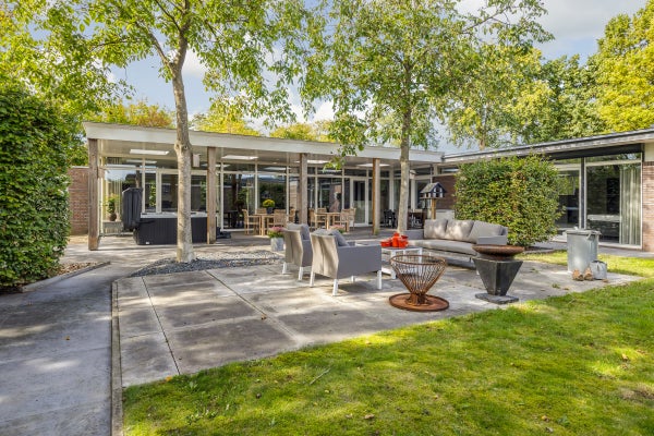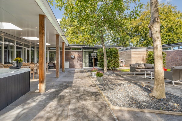 Deze levensloopbestendige bungalow aan De Heiningen 19 belooft ruimte, comfort en luxe. Met een woonoppervlakte van 167 m² en een perceel van 1167 m² biedt het meerdere auto parkeerplaatsen en een garage. De lichte hal leidt naar een sfeervolle woonkamer met openslaande tuindeuren, een houtkachel en airco. De open keuken is uitgerust met een kookeiland en moderne inbouwapparatuur. De woning heeft twee ruime slaapkamers, waaronder een master bedroom met directe tuinverbinding. De badkamer bevat een dubbele wastafel en inloopdouche. De fraai aangelegde tuin, voorzien van een jacuzzi en veranda, nodigt uit tot ontspanning. Met energielabel A en zonnepanelen is deze woning toekomstbestendig.