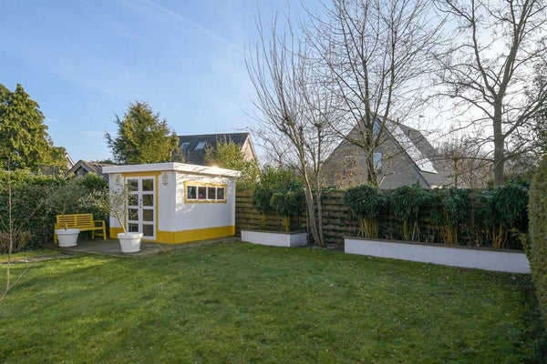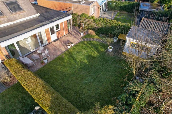 De mooie sfeervolle tuin is gelegen op het zuiden en biedt voldoende privacy. Via de schuifdeur in de woonkamer en/of de deur in de bijkeuken kom je op een ruim terras, aangelegd over de volle breedte van de woning. Achter in de tuin staat nog een mooi houten tuinhuisje van ca 7,5 m2.