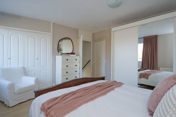 Een vast trap leidt naar de tweede verdieping waar zich nog een ruime vierde slaapkamer bevindt met toegang tot een balkon. Hier kun je op mooie zomeravonden heerlijk genieten van het uitzicht. Op de zolder is een ruime berging aanwezig. Hier bevindt zich ook de WTW installatie. Op de zuidgevel liggen 2 warmwater zonnecollectoren en op het platte dak liggen 4 zonnepanelen.