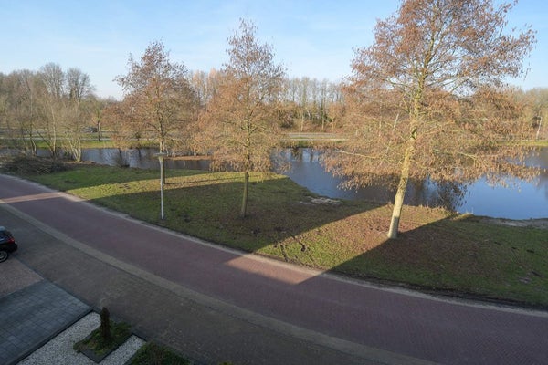Via de hal kom je in de leefkeuken, welke zich aan de voorzijde van de woning bevindt. Vanuit de leefkeuken heb je een prachtig vrij uitzicht over vijverpartij met veel groen.