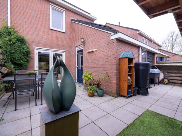 Op de eerste verdieping zijn drie ruime slaapkamers en een moderne badkamer met inloopdouche en wastafel. De tweede verdieping heeft een grote slaapkamer met dakraam en inloopkast. De onderhoudsvriendelijke tuin heeft een fraai terras met overkapping.