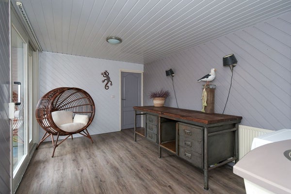 De huidige bijkeuken leent zich, met een kleine aanpassing, uitstekend voor een extra slaapkamer op de begane grond. In combinatie met de aangrenzende royale garage, die eenvoudig kan worden ingericht met een moderne doucheruimte en sanitair, ontstaat er een complete woonvleugel beneden. Dit maakt de woning uitermate geschikt voor wie nu of in de toekomst alle voorzieningen op de begane grond wenst.