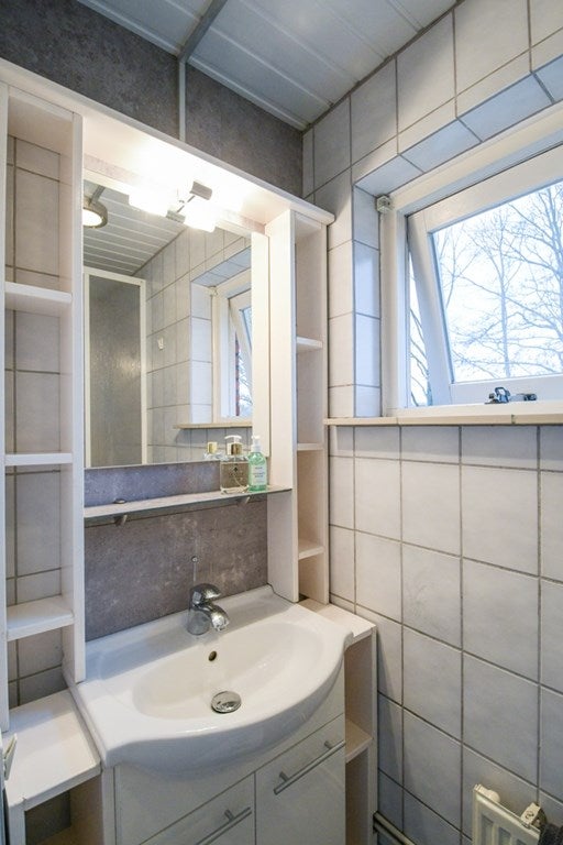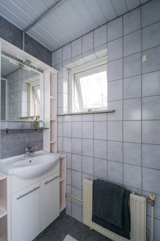 Op de eerste verdieping bevinden zich 3 slaapkamers, waarvan 2 beschikken over vaste kasten. De badkamer is functioneel met wastafel en douchehoek. Via de overloop geeft een vlizo trap toegang tot de bergzolder.