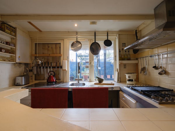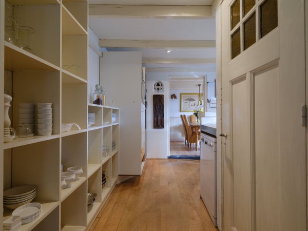De eerste verdieping beschikt over een open ruimte die kan dienen als studio, twee slaapkamers zijn eenvoudig te realiseren. Buiten is er een besloten achtertuin met veel privacy en een diepe garage voorzien van elektra. Deze woning biedt mogelijkheden en sfeer.