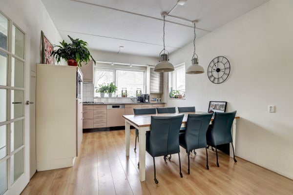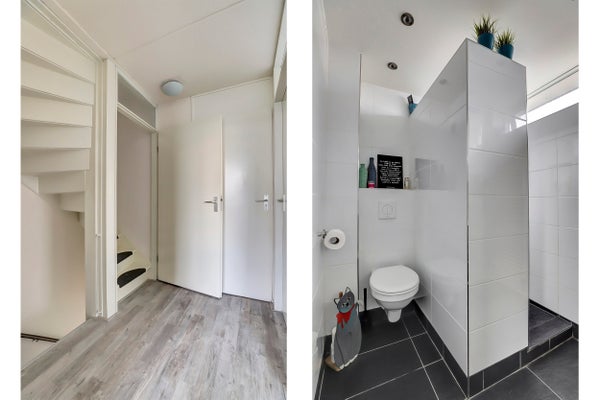 De eerste verdieping omvat een overloop, drie slaapkamers en een gerenoveerde badkamer met wastafelmeubel en inloopdouche. Op de tweede verdieping is een vierde slaapkamer. Buiten is er een keurig verzorgde achtertuin op het zuiden met een terrasoverkapping. Dit gezinshuis biedt veel ruimte en privacy, met een perceeloppervlak van 232 m² en een woonoppervlak van 117 m².