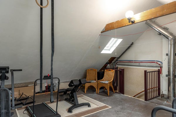 Een vaste trap naar de 2de verdieping met 2 dakramen waardoor ook hier genoeg licht binnenkomt. De nok is ca. 3,20 m hoog en het woonoppervlak is er ca. 25 m2. Hier zou je nog een slaapkamer en bergruimte kunnen maken in de toekomst.