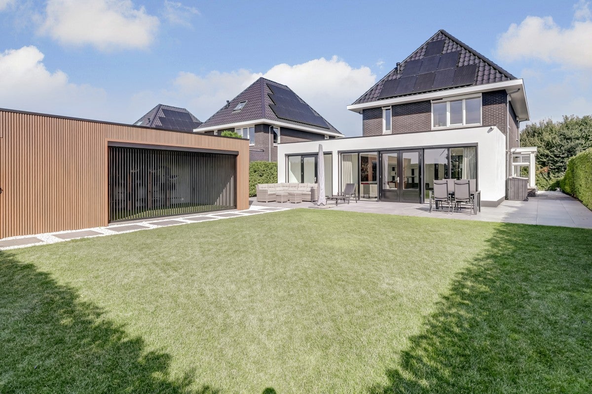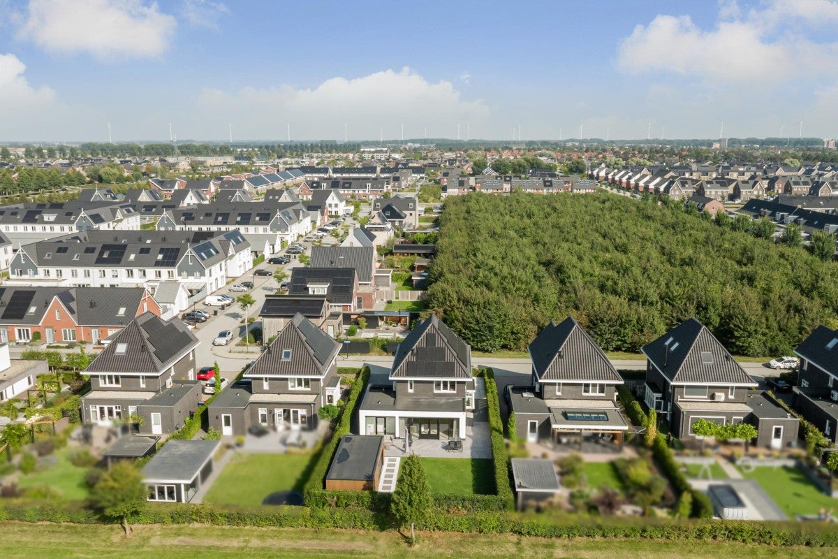 Deze vrijstaande woning, gebouwd in 2021, is gelegen op een prachtige locatie in Dronten met uitzicht over de landerijen. Het perceel van 594 m² biedt voldoende ruimte en heeft rondom een tuin en een oprit met plek voor vier auto's. De achtertuin op het westen is voorzien van een zonneterras en een vrijstaande berging. De woning heeft een oppervlakte van 238 m² en beschikt over drie ruime slaapkamers. De luxe badkamer heeft een inloopdouche en vloerverwarming. De moderne woonkamer is vier meter uitgebouwd en de woonkeuken met eiland is uitgerust met inbouwapparatuur. Een vaste trap leidt naar de zolder, waar ruimte is voor twee extra slaapkamers. De woning is duurzaam met een warmtepomp en 27 zonnepanelen. Scholen, winkels en het treinstation zijn dichtbij.