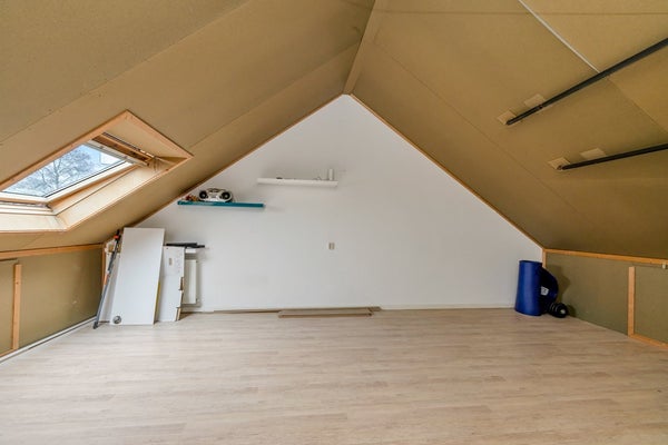 Vaste trap naar een ruime zolder met dakraam, waar eenvoudig een vierde slaapkamer kan worden gerealiseerd. Hier bevinden zich tevens de cv-ketel, zonneboiler, warmte terugwin unit en de wasmachineaansluiting.