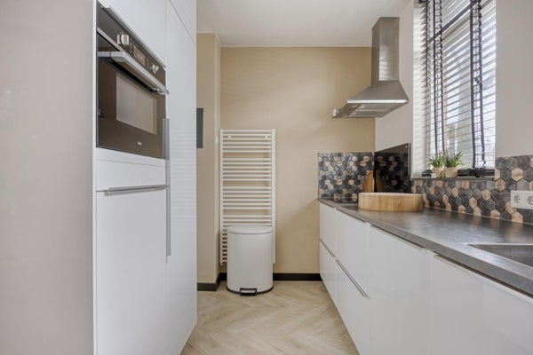 Half open keukenruimte met keukenopstelling, bergruimte d.m.v. diverse boven-