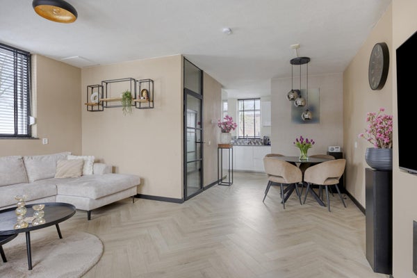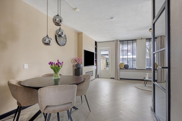 annex trapkast. Het zitgedeelte is aan de achtertuin zijde en het eetgedeelte centraal in de woonkamer nabij