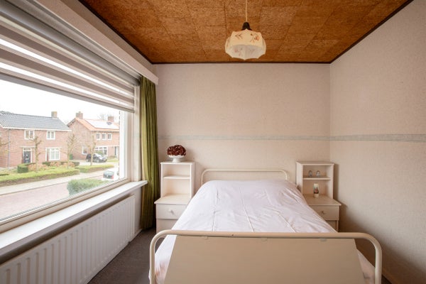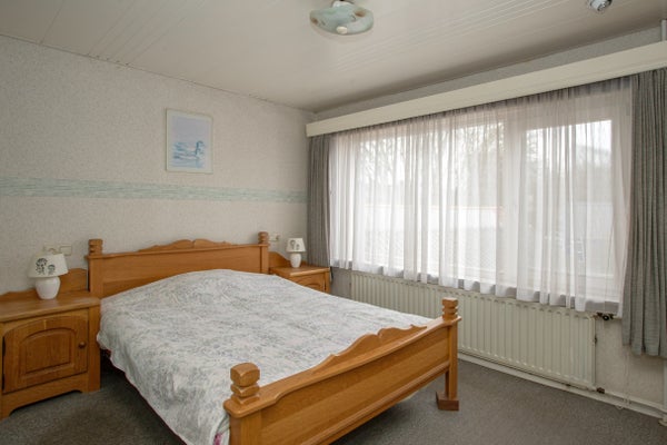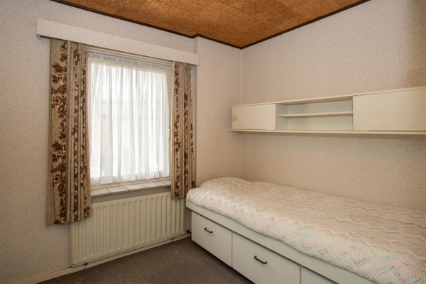 De tweede slaapkamer aan de achterzijde beschikt over een vaste trap die leidt naar de tweede verdieping en heeft via een deur toegang tot het platte dak boven de bijkeuken. Aan de voorzijde van het huis liggen nog twee slaapkamers met een prettige en functionele indeling. Eén van deze kamers is voorzien van een praktische inbouwkast.