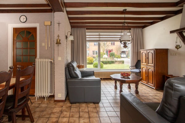 Aan de straatzijde is voldoende plek voor een comfortabele zithoek met uitzicht op de rustige omgeving. Aan de achterzijde past met gemak een grote eettafel, ideaal voor gezellige diners. Hier heb je niet alleen contact met de keuken, maar kijk je ook uit op de tuin.