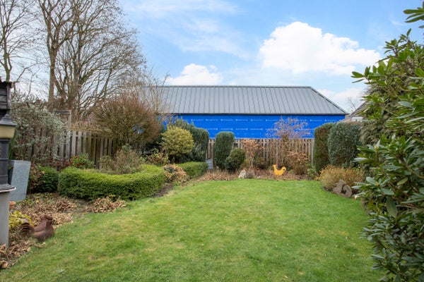 In de tuin bevinden zich verschillende opstallen, waaronder een berging met dierenverblijf en een royale overkapping die aan de bijkeuken is gebouwd. Ideaal voor extra opslag of beschutting, maar ook eenvoudig aan te passen of te verwijderen wanneer je liever meer tuinruimte wilt creëren of plannen hebt voor een aanbouw. De mogelijkheden zijn volop aanwezig.