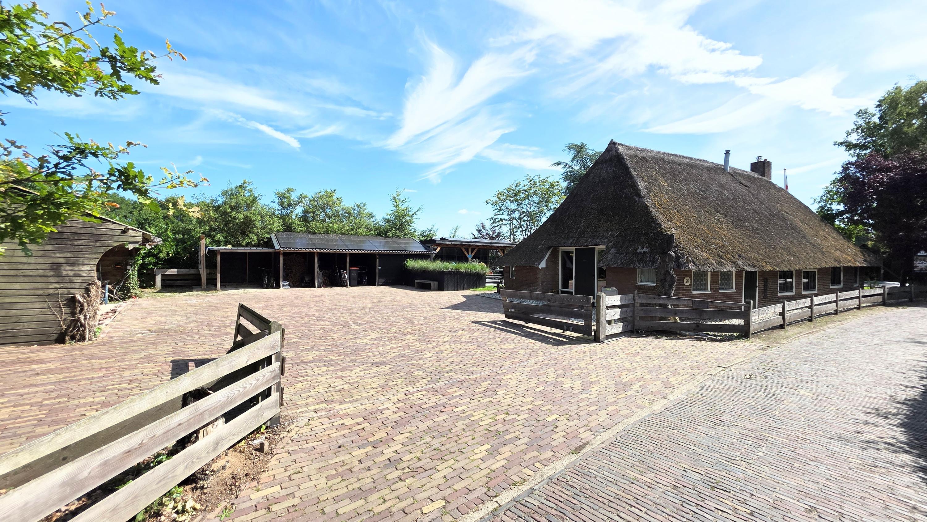 Deze karakteristieke, vrijstaande woonboerderij uit 1920 ligt aan de rand van Dwingeloo, nabij voorzieningen. De boerderij heeft een ruime begane grond met een slaapkamer, moderne badkamer en een sfeervolle woonkamer met open keuken. Een inpandige schuur van ca. 35 m² biedt mogelijkheden voor uitbreiding. De tuin is prachtig aangelegd en rondom de woning bevinden zich 24 zonnepanelen voor laag energieverbruik. Op de eerste verdieping zijn nog twee slaapkamers te vinden. Met een totale woonoppervlakte van ca. 84 m² en omringd door landerijen, biedt deze woning de ideale combinatie van natuur en gemak. De woning ligt op een perceel van ca. 738 m² en is goed bereikbaar met openbaar vervoer.