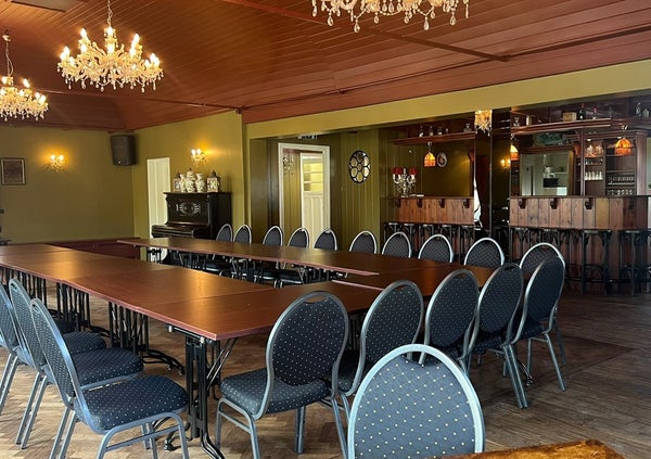 bovenverdieping ca. 175 m² waaronder bovenzaal ca. 127 m² en (pantry + opslag + toiletruimtes) ca. 48 m².