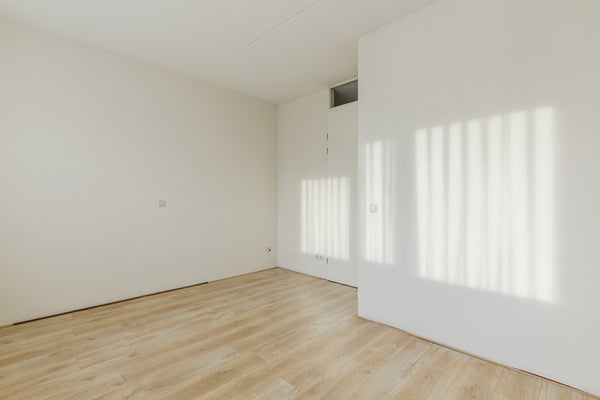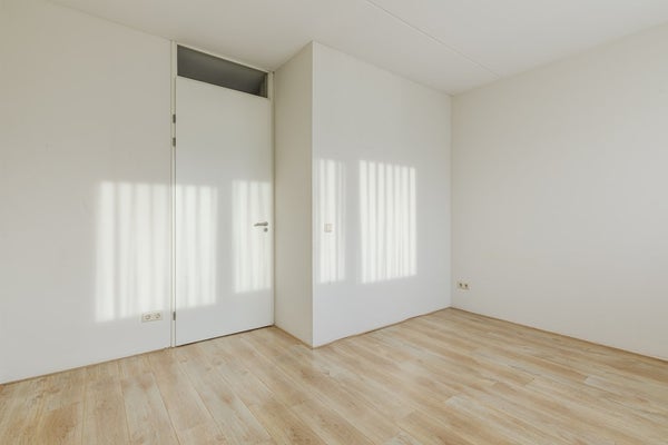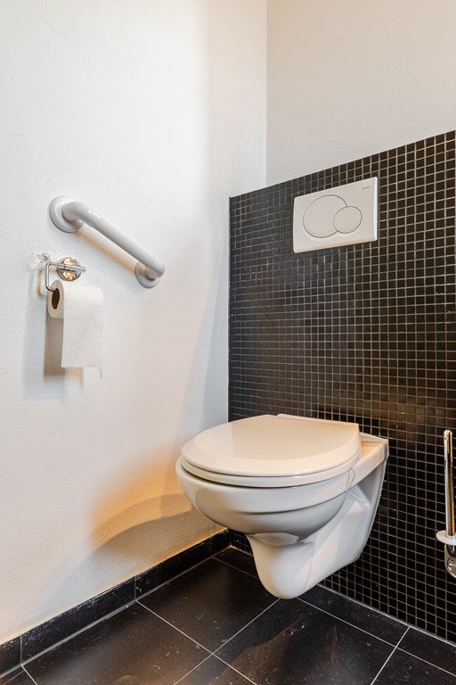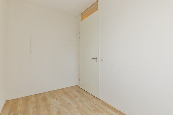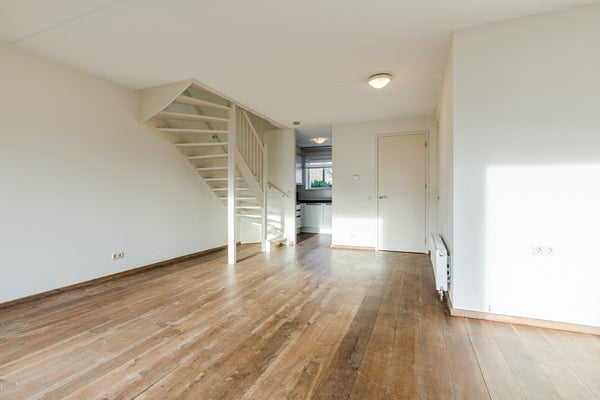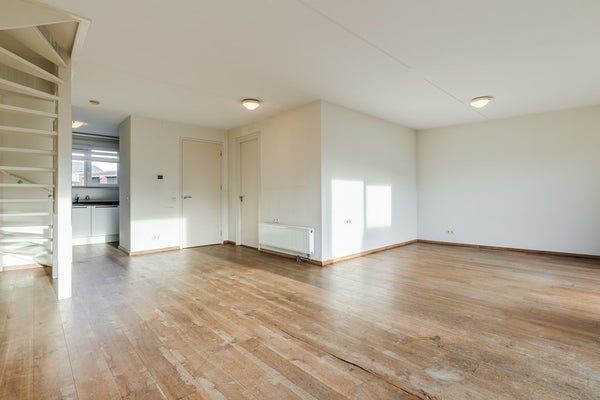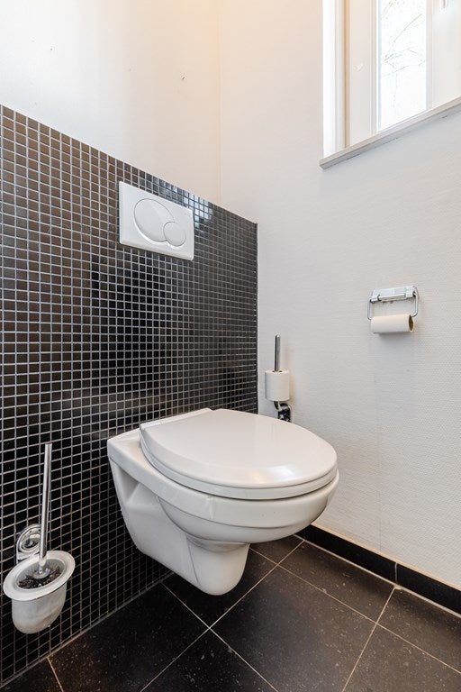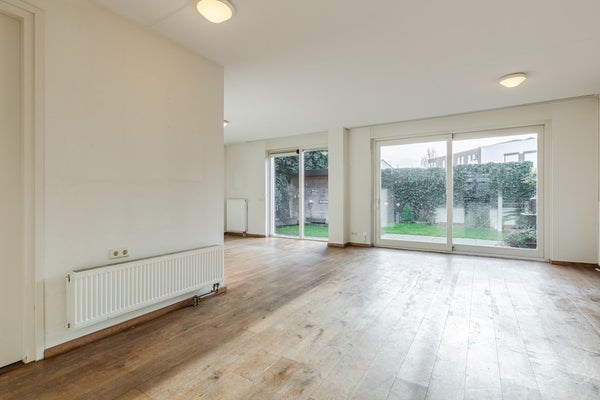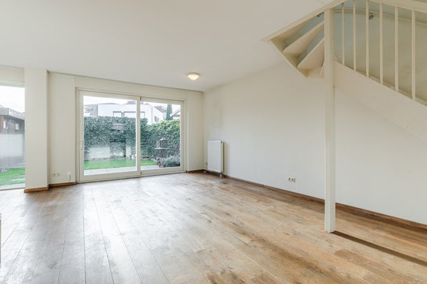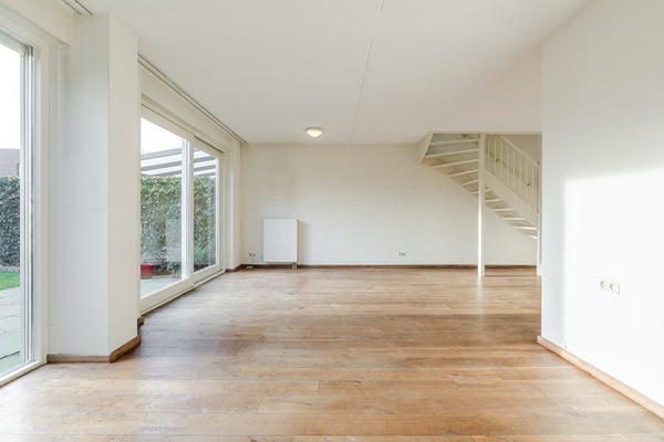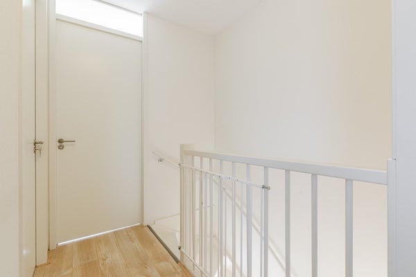 Je komt binnen in een lichte hal met meterkast, en een modern zwevend toilet met fonteintje. Vanuit hier stap je de ruime woonkamer (32 m²) in, een fijne, open leefruimte met veel lichtinval, schuifpui naar het terras en een laminaatvloer die voor een warme uitstraling zorgt.