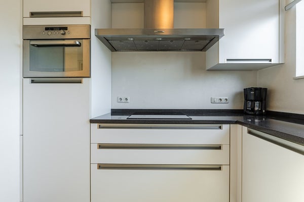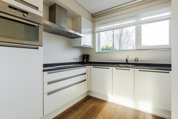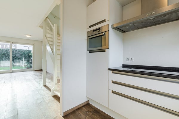Aan de voorzijde ligt de moderne, open keuken (7 m²), voorzien van een indictiekookplaat, afzuigkap, combimagnetron, vaatwasser en koelkast. Een ideale plek om te koken en gezellig samen te zijn. Vanuit de woonkamer is er via een schuifpui toegang tot de tuin.