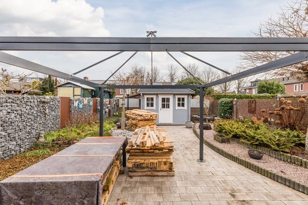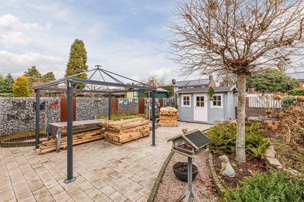 De ruime achtertuin is gelegen op het noordoosten en beschikt over een overkapping en veel privacy.