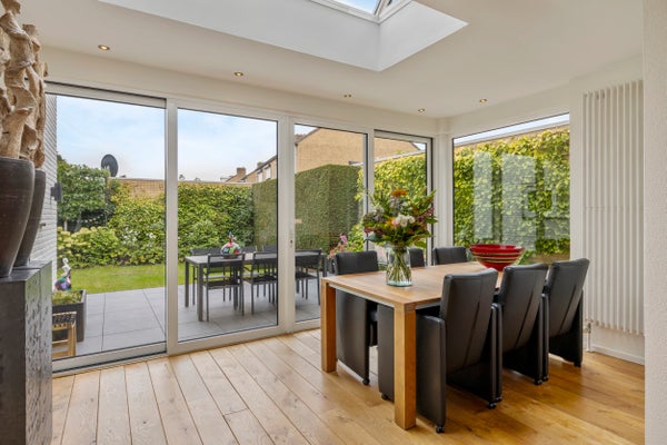 - De vrijstaande woning heeft een woonoppervlakte van 145 m² en beschikt over 9 kamers, waarvan 4 slaapkamers;