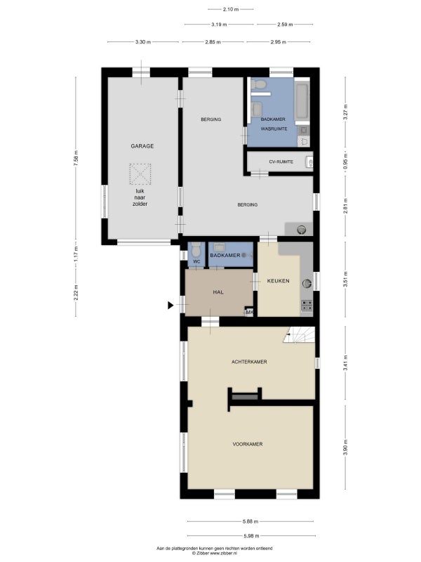- De vrijstaande woning heeft een woonoppervlakte van 125 m² en beschikt over 7 kamers, waarvan 3 slaapkamers;