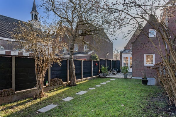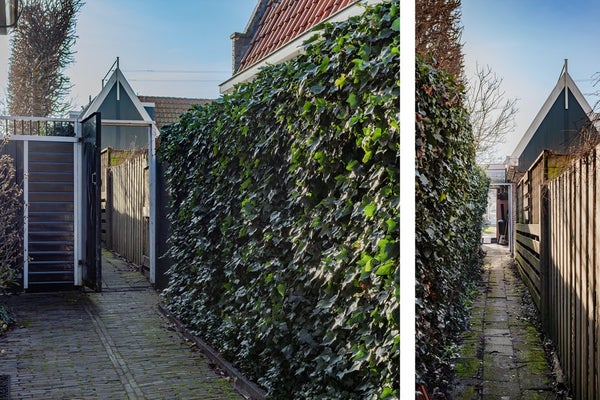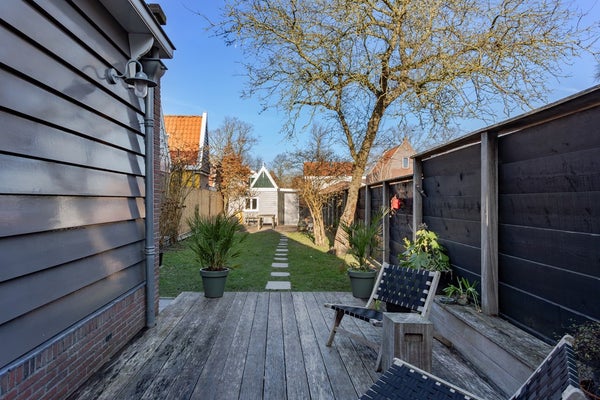 De diepe tuin is zowel vanaf de Voorhaven als de Achterhaven achterom te bereiken en biedt door de gunstige ligging en diepte vrijwel de gehele dag zon. Je geniet hier van veel privacy en de achtergelegen bergingen bieden een ideale mogelijkheid om zowel spullen op te slaan als te klussen. De gehele tuin is netjes aangelegd met een combinatie van groen, diverse bomen en een sfeervolle houten vlonder.