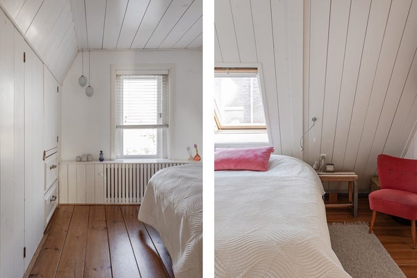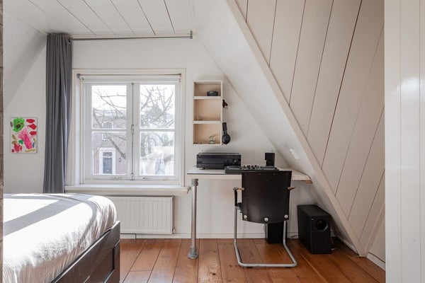 Op de gehele verdieping is veel ruimte gewonnen door de enorme dakkapel, waardoor er drie slaapkamers gerealiseerd zijn. De achterste slaapkamer beschikt over een ruime walk-in closet en biedt zicht over de diepe achtergelegen tuin. De slaapkamer aan de voorzijde kijkt prachtig uit over de voorgelegen gracht. Alle slaapkamers zijn netjes en geheel in stijl met de rest van de woning afgewerkt.