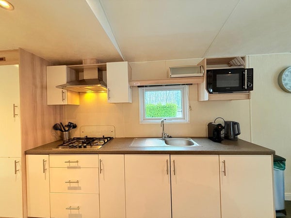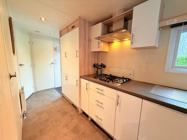 De keuken is praktisch en overzichtelijk ingericht en sluit mooi aan op de leefruimte. Hierdoor blijft koken een sociaal en ontspannen moment, passend bij het recreatieve karakter van de woning.