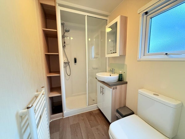 De badkamer is netjes en verzorgd uitgevoerd en biedt alles wat nodig is voor een comfortabel verblijf. Een frisse en praktische ruimte die past bij het geheel van de woning.