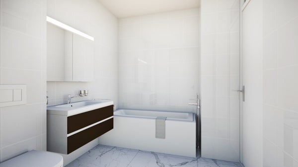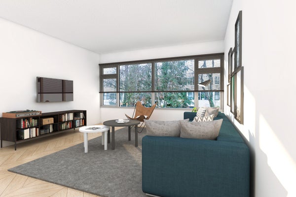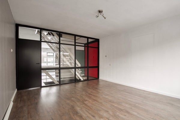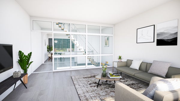 Deze woningen zijn bekend vanwege de speelse indeling; iets wat je aan de buitenzijde niet direct verwacht. Je woont ‘op niveau’ op de eerste verdieping; de zitkamer is aan de achterzijde, de woonkeuken aan de voorzijde en ertussen is de overloop met toiletruimte en een praktische bergkast. Grote ramen aan de voor- en achterzijde zorgen voor een weldaad van licht.