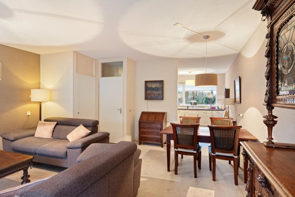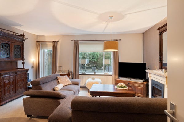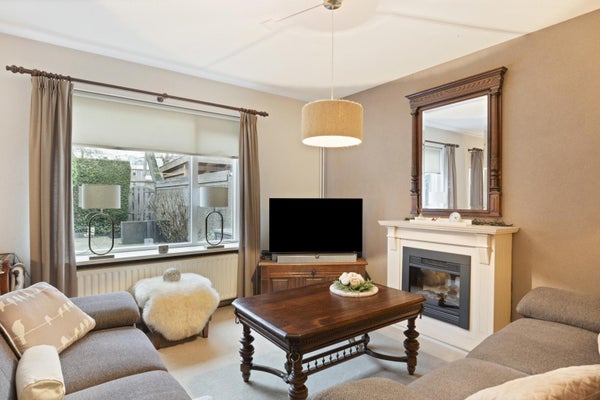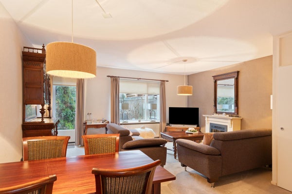 De woonkamer is heerlijk licht dankzij de grote raampartijen en heeft een prettige, open sfeer. De aanwezige sfeerhaard zorgt voor extra gezelligheid en maakt deze ruimte tot een fijne plek om te ontspannen, vooral tijdens de koudere maanden.
