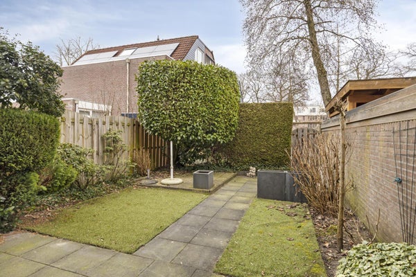 In de loop van de dag ontstaat er een prettige balans tussen zon en schaduw. De tuin is tevens voorzien van een praktische achterom, ideaal voor fietsen en tuinspullen.