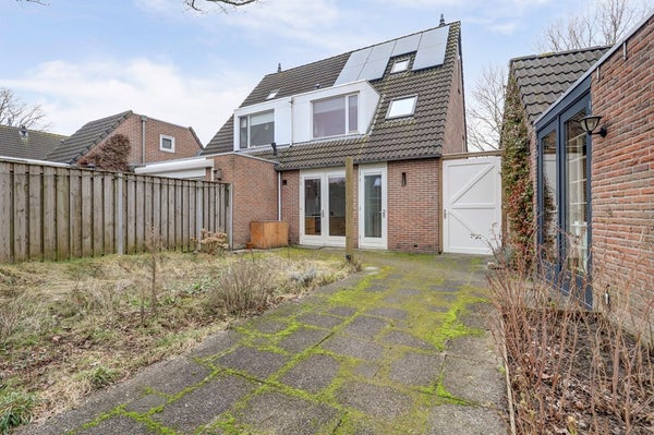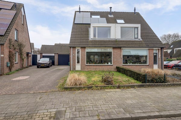 Welkom bij deze sfeervolle twee-onder-een-kapwoning met eigen oprit, stenen garage, royale achtertuin, 13 zonnepanelen en een energielabel B.