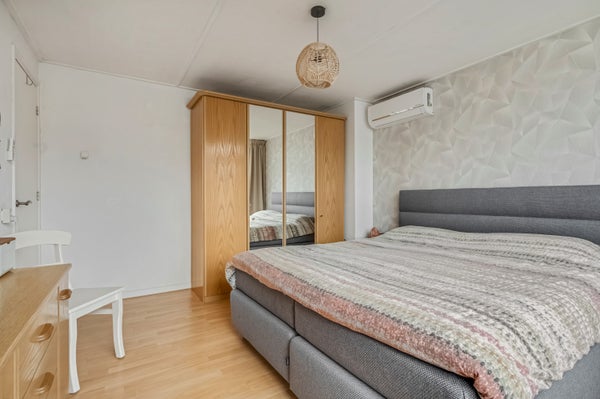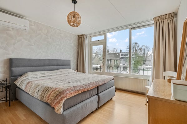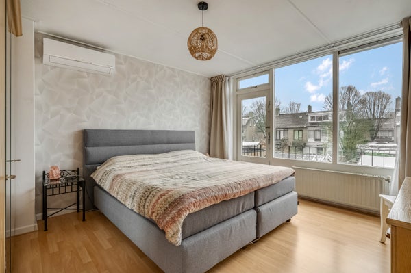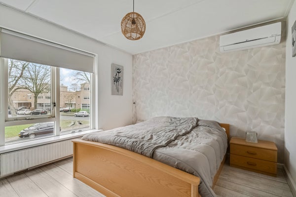 Vanaf de overloop is er toegang tot drie slaapkamers, waarvan twee aan de achterzijde. De grootste slaapkamer, met airco, heeft een balkon en in alle kamers ligt laminaat op de vloer. Ook de slaapkamer aan de voorzijde, met airco, is groot genoeg om in te richten als tweepersoonskamer.