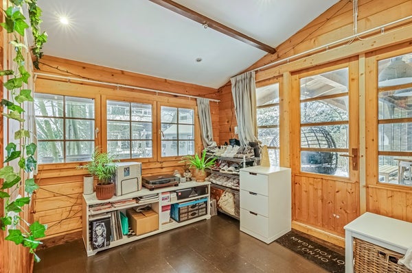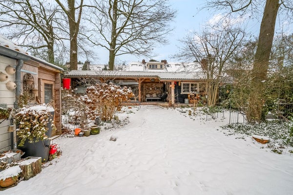 De woning beschikt over een sfeervolle woonkamer, een werkkamer op de begane grond en een ruime leefkeuken in de uitbouw. Rondom de woning ligt een fraaie groene tuin met meerdere terrassen, een houten veranda met slaap/werkkamer en parkeergelegenheid op eigen terrein.