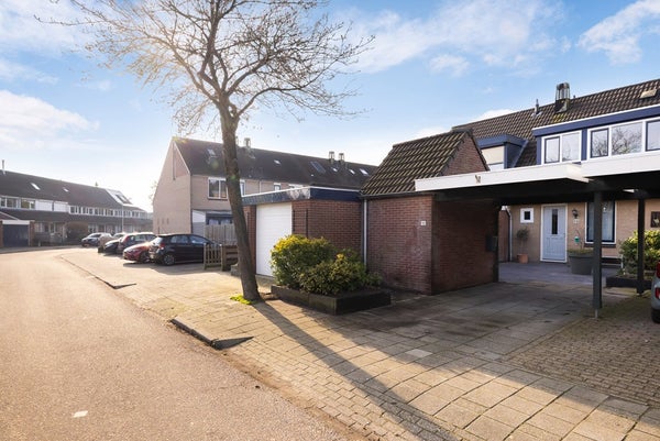 Zowel aan de voor- als achterzijde is het buiten heerlijk vertoeven. Aan de voorzijde kun je je auto overdekt parkeren op eigen terrein onder de carport, en je fietsen of tuingereedschap kun je kwijt in de stenen berging. Ook kun je hier in alle privacy genieten van de ochtendzon. De tuin aan de achterzijde is achterom bereikbaar en heeft een gazon en diverse groene borders. Vanuit de woonkamer loop je direct het terras op, en achter in de tuin is nog een extra bestraat terras, zodat er altijd een fijne plek te vinden is. Bovendien is er in de buurt voldoende parkeer- en speelgelegenheid.