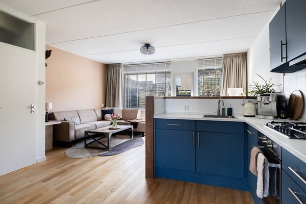 Via de entree kom je in de hal met toiletruimte, meterkast (inclusief glasvezelaansluiting), schuifdeur naar de woonkeuken en de trap naar de eerste verdieping. De tuingerichte woonkamer heeft een houten vloer, een praktische provisiekast en een deur naar de achtertuin. De open keuken in hoekopstelling is voorzien van een kookplaat, afzuigkap en oven. Aan de voorzijde van de woning is plaats voor een knusse eethoek.