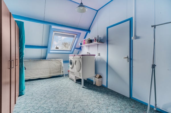 Op de tweede verdieping bevindt zich de vierde slaapkamer. Deze kamer heeft een dakraam, een royale vloeroppervlakte en hier zijn de aansluitingen voor de wasapparatuur. Ga je de kamer als slaapkamer gebruiken, dan kunnen de aansluitingen worden verplaatst naar de overloop.