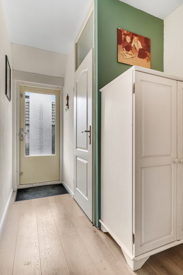 Neem eerst de tijd om het water en het groen te bewonderen, recht voor de deur van deze woning. Vervolgens loop je via de voordeur de hal in, met de meterkast en een lichte laminaatvloer. Dit is een goed begin van jouw kennismaking met deze fijne woning!