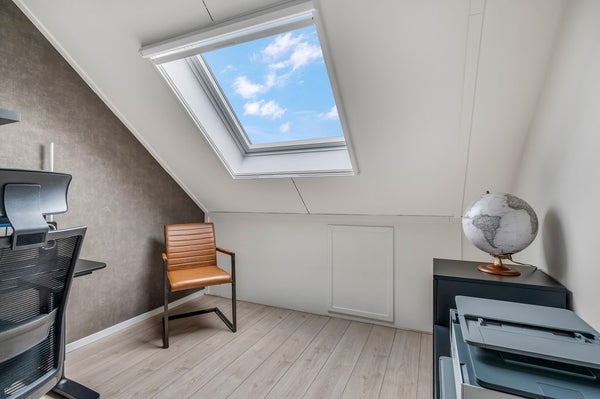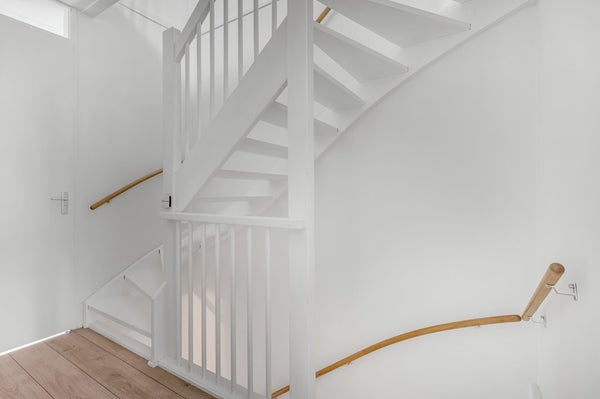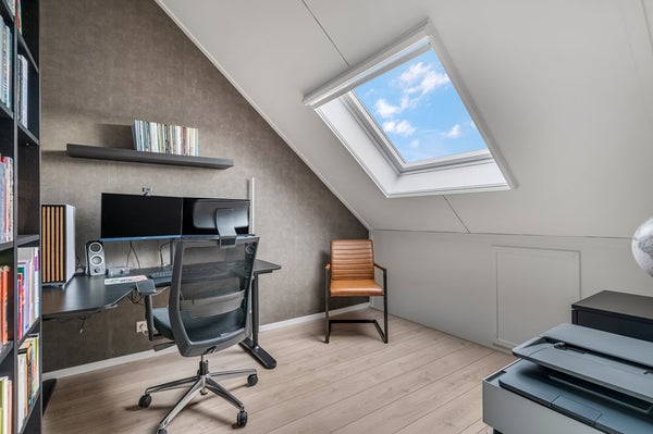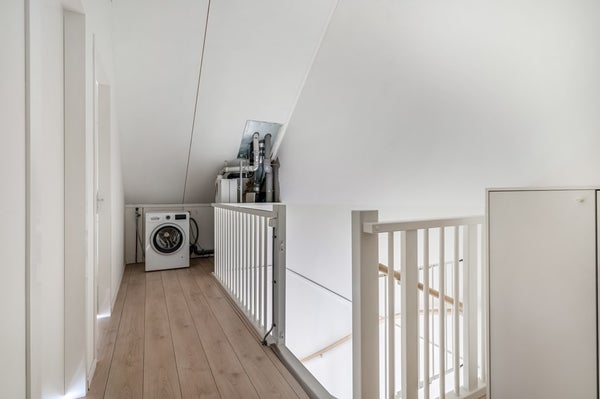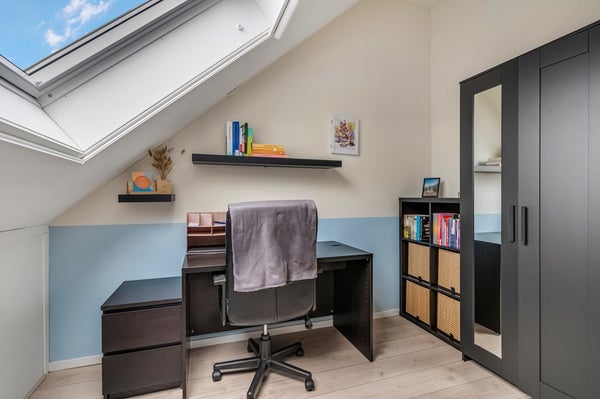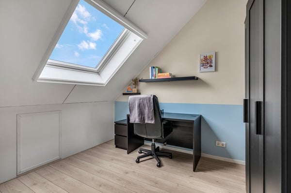 Via een vaste trap kom je op de tweede verdieping waar in 2023 twee volwaardige slaapkamers zijn gerealiseerd, beide met grote dakramen. Hier bevinden zich tevens de cv-ketel (Intergas, 2014) en de wasmachineaansluiting. Ook deze verdieping is netjes afgewerkt met laminaat en lichte wandafwerking. Achter de knieschotten is nog extra opbergruimte aanwezig.
