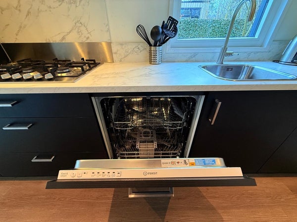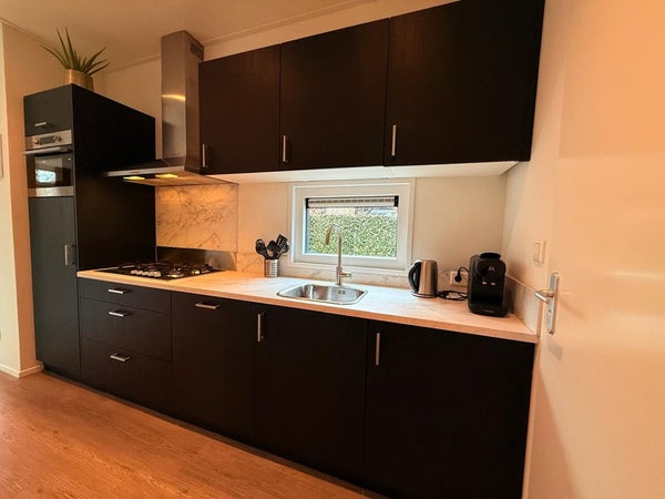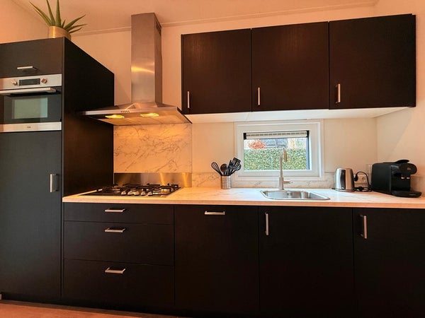 De moderne keuken is ruim opgezet en netjes afgewerkt. Hier kookt u met plezier, of het nu gaat om een snelle lunch of een uitgebreid diner. De strakke uitstraling en praktische indeling maken het een prettige plek waar functionaliteit en sfeer samenkomen.